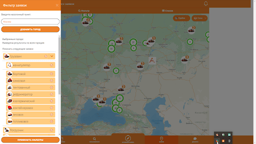 Для исполнителей доступны формирования сопроводительных документов, отсчетов, отслеживание маршрутов и расхода топлива.