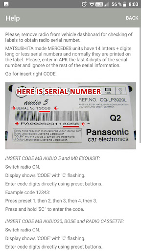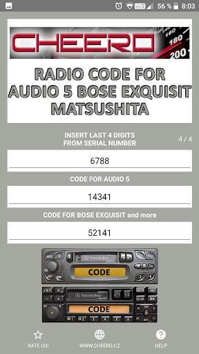 Radio CODE for AUDIO 5 CC PANASONIC MATSUSHITA and more models radio.