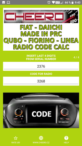 Calc CODE for RADIO and NAVI – FIAT DAIICHI for FIAT QUBO FIORINO PUNTO DUCATO LINEA for LANCIA YPSILON – all radios Made in PRC.