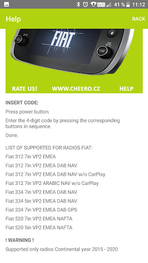 Radio CODE for FIAT EMEA 7″ 5″ CONTINENTAL NAVI VP2.