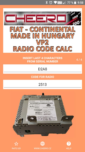 Calc CODE for radios FIAT TIPO model CONTINENTAL VP2 – Made in Hungary.