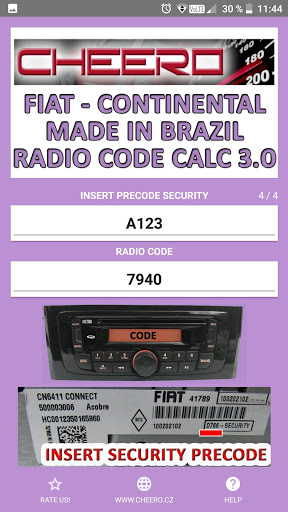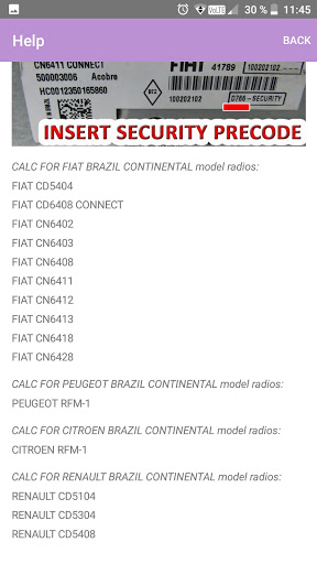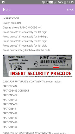 Radio CODE for FIAT PEUGEOT CITROEN RENAULT – CONTINENTAL BRAZIL.