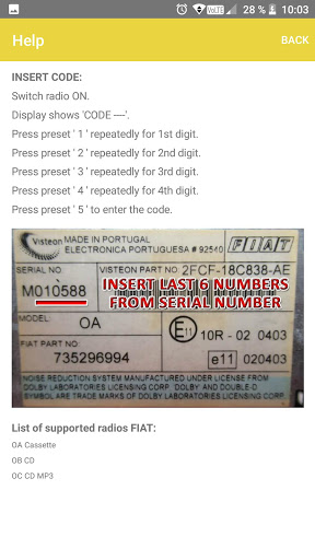 Calc CODE for all radios FIAT STILO by VISTEON.