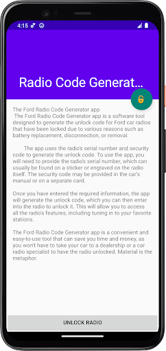 The Ford Radio Code Generator app is a software tool designed to generate the unlock code for Ford car radios that have been locked due to various reasons such as battery replacement, disconnection, or removal.