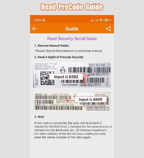 The battery is disconnected and reconnected for Renault vehicle. When the radio is protected by a four digit code. If you don’t remember radio code, you need this App for calculator radio code via pre-code security.