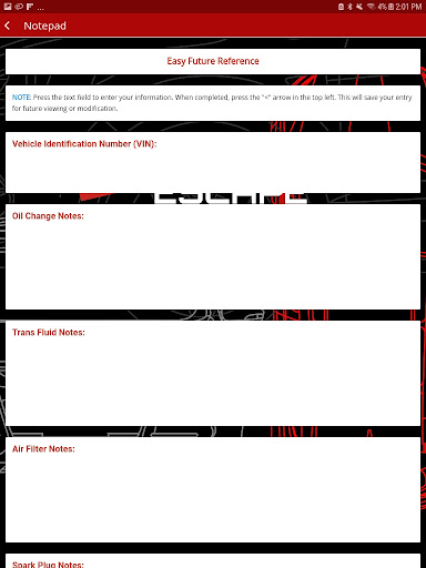 – Notepad to store service pertinent information for future reference