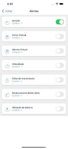 Com este aplicativo você poderá gerenciar o evento de alerta de ignição, que será acionado quando a ignição do seu carro for ligada.