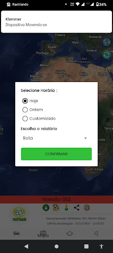 No mapa, o aplicativo requer a permissão de localização, se autorizada, esta servirá para montar uma rota do seu local atual até o seu veículo rastreado.