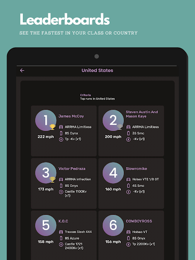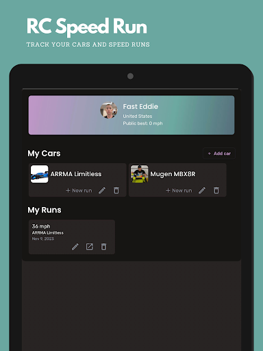The RC Speed Run app lets you easily log your runs – record your car’s gearing, motor, batteries, and more, and save pictures, so you can go back and review them and see how your car was set up.