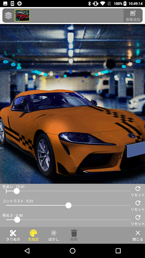 自分の車の写真を撮って、ロゴやステッカー画像を重ねることで、画面上でカーラッピングを楽しめます。