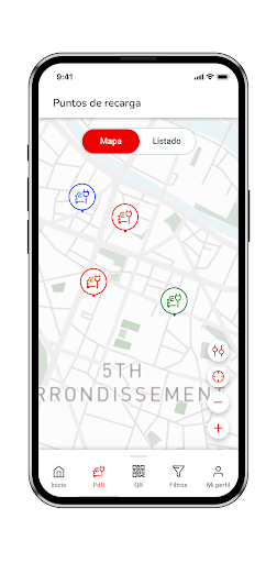 – Encontrar de forma rápida al punto de recarga más cercano a ti y la ruta para llegar a él.