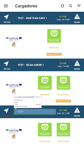 – Mapa: indica la posición en la que se encuentra el usuario y la de los cargadores.