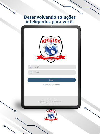 Este aplicativo serve para fazer a localização rápida e pratica do veículo, devendo em caso de roubo e furto acionar imediatamente as Forças de Segurança Pública e logo apos acionar a equipe de apoio da REDELOC pelo 0800 onde terá todo o apoio na localização do seu veículo.