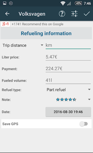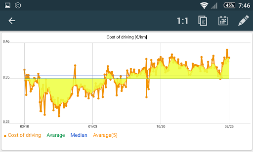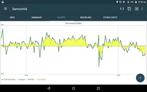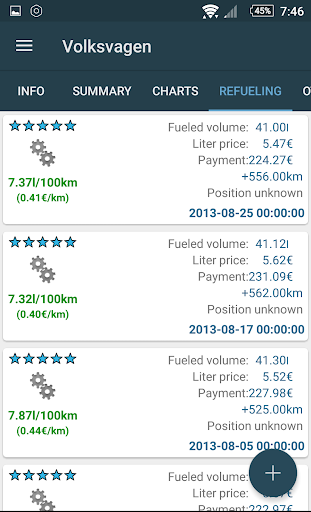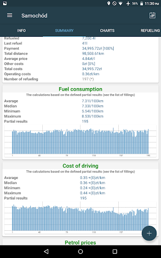 Refuel Calc enables to conduct statistics related to fuel economy.