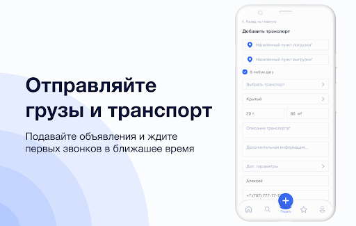 – Добавляйте свой транспорт и получайте звонки с предложениями о грузоперевозке.