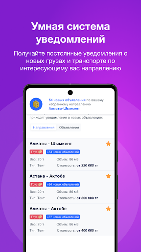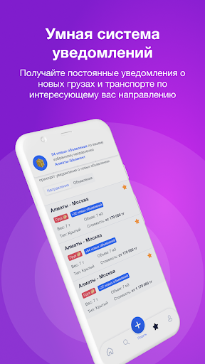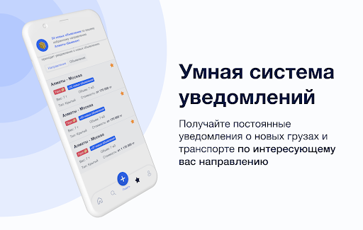 – Получать уведомления и постоянно быть в курсе новых грузов или свободных транспортов.