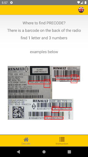 Application thanks to which you will receive a code to unlock the radio in Renault cars