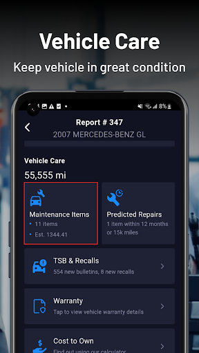 App users can see warranty status, scheduled maintenance, technical service bulletins, recalls, 5-year cost to own, recalls, layman’s definitions of diagnostic trouble codes, effect on the vehicle, and # of fixes available from the RepairSolutions2 comprehensive repair database.