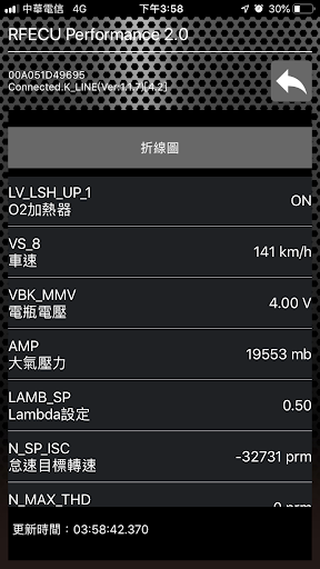 – 可錄製下所有60幾個參數事後調出檔案進行曲線圖分析