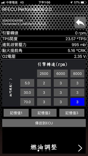 -O2範圍:原廠O2 Sensor可流用,未來對應驗車排汙無問題,並可依個人喜好調整進入動力增濃模式。