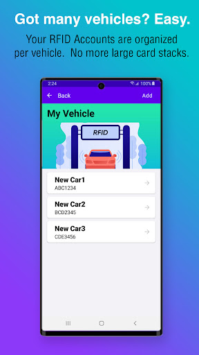 2. Organize multiple RFID accounts per vehicle for easy viewing and retrieval.
