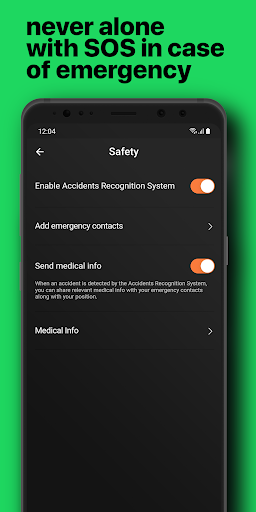 – Rider assistance (accidents recognition, emergency contacts, medical info sharing, etc.)