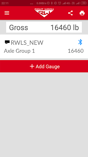 Monitor axle group weights, share current weight via email or text message, and print a weight ticket over most commercially available POS-style Bluetooth printers. Other features include scale name customization, net weight with tare button, overweight warning, and air suspension pressure display.