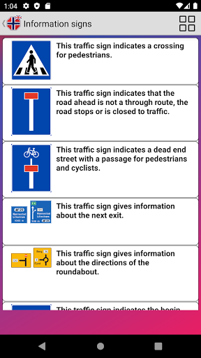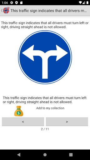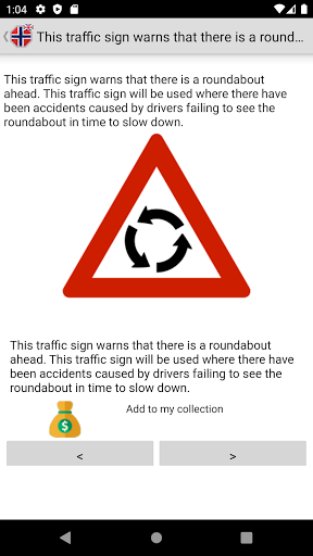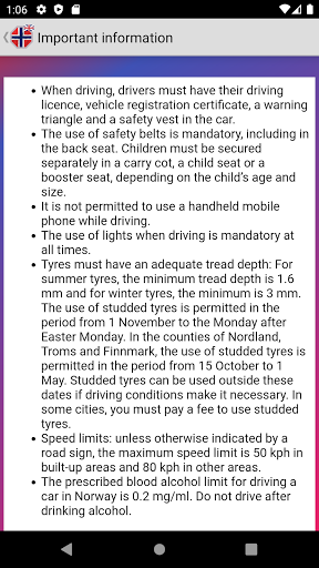 You can add traffic signs to favourite and check your knowledge of Norwegian road rules with a simple quiz.