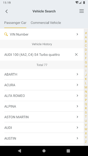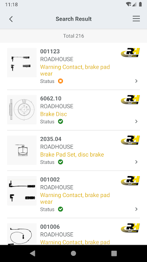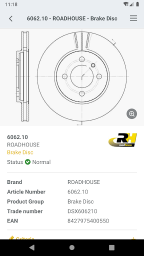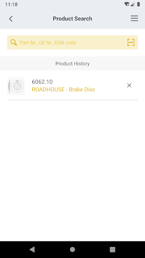 – Product Search: Find the part number by directly entering any Road House reference, origin reference, competitors reference, international number (WVA), FMSI…In this option you can also scan the Road House product barcode with your device.