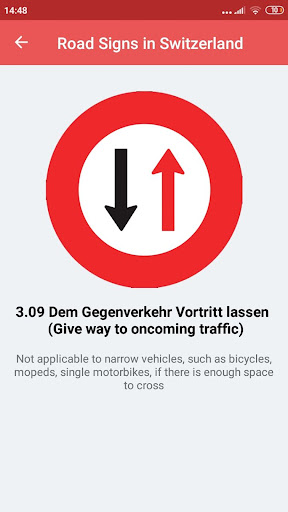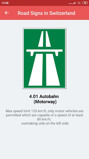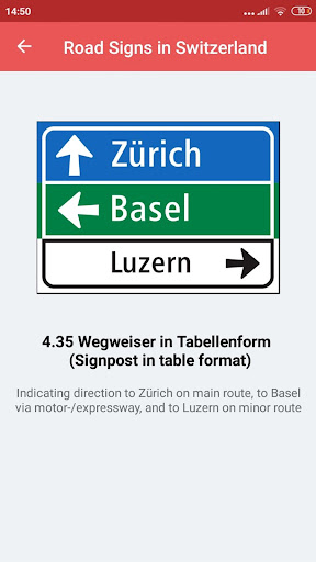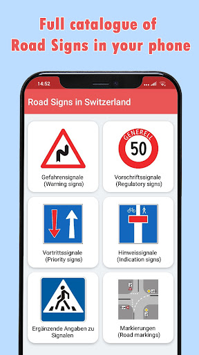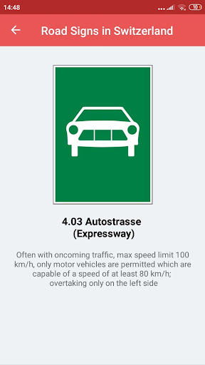 Our application contains all the road signs in Switzerland and Liechtenstein.