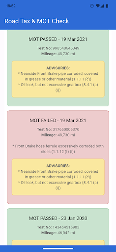 All the data in the app is updated 24/7 as vehicles pass or fail MOTs. The car data is provided in real-time from the DVLA and DVSA.