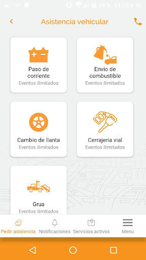 Con esta nueva aplicación podrás solicitar tus servicios de asistencia vial que se encuentren disponibles en tu póliza de automóvil como: