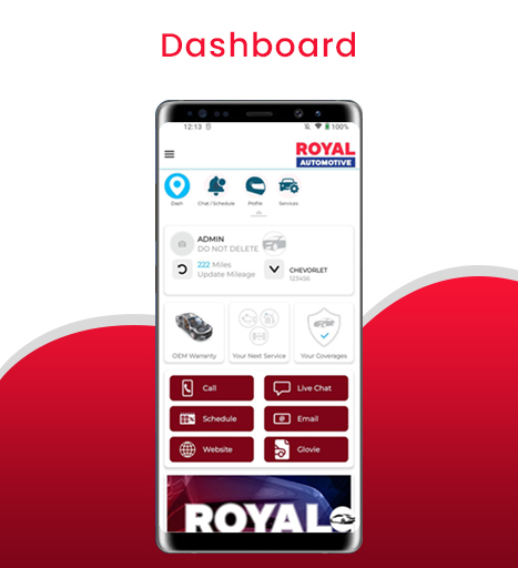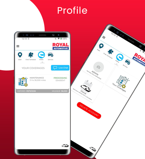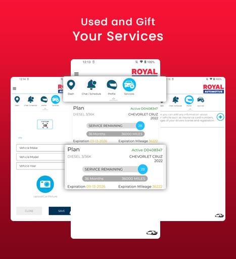 The Royal Auto Care app provides a portal for users to: