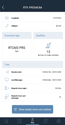 This App allows to check the status of all reference stations worldwide. In addition, it allows to check the status of each rover. By clicking on a rover, a detailed window pops-up displaying lot of information of the rover. This helps the user of the App to see the status of the rover, the number of satellites used, how long it has been connected…