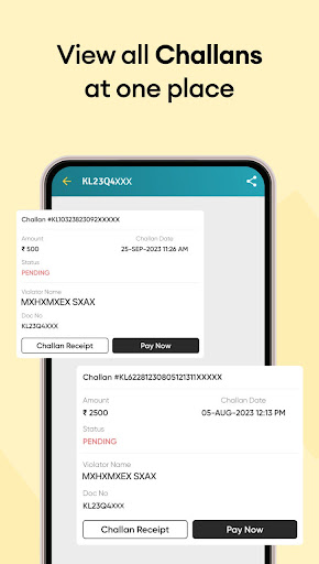 ✔ Check out the challan status and details of your vehicle. You just need to provide the RC number or DL number or just scan the number plate to find out the challan details.