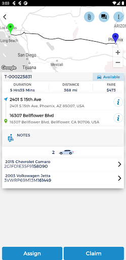 – Use the app to; review vehicle details, upload photos to confirm vehicle condition, generate Bill of Lading and communicate with customers