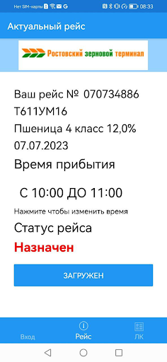 Приложение позволяет водителям видеть назначенные рейсы и отмечать статусы выполнеия рейсов