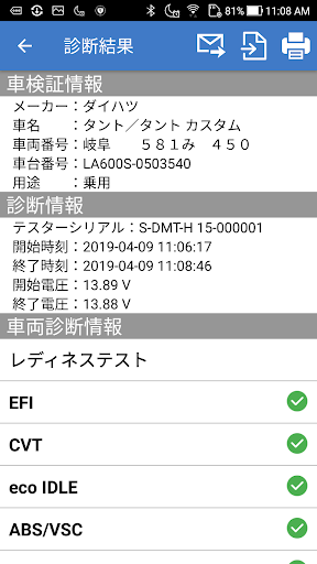 S-DMT-Inspection-1は、タブレットやスマートフォンのBluetooth通信でS-DMTデバイスから車両の診断結果を受信し、表示するAndroidアプリケーションです。