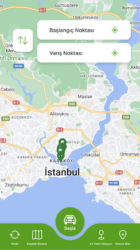 Elektrikli Otomobil şarj istasyonlarının konumlarını görüntüle, elektrikli otomobille yolculuğunu hangi noktalarda şarj için duracağını planla ve şarjet devam et.