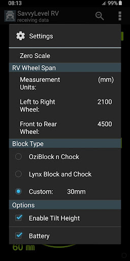 The device remotely reports which wheels require elevating to give you a perfect level. It reports in millimeters or inches and in block height if you choose to use OziBlock ‘n’ Chock (www.oziblocknchock.com.au) or Lynx leveling blocks.
