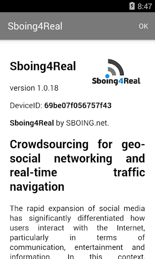 Recognizing the enormous potential that crowdsourcing can offer in modern navigation systems, the SBOING4REAL project aims to develop innovative technologies for the geo-sensitive social networking of people who use navigation devices and for the exchange of additional real-time navigation information to improve vehicular navigation. The proposed system will operate based on SBOING’s existing navigator, sbNavi™, and complementary to the offline routing and navigation functionality sbNavi provides to date, adding new functionality and providing the following new services: