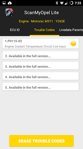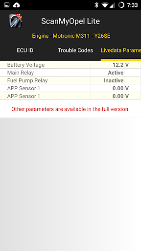 ScanMyOpel Lite features include: