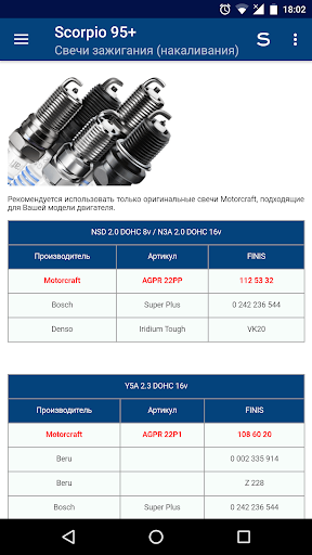 “Scorpio 95+” will help you find factory spare part numbers and their analogs without having to access the Internet.