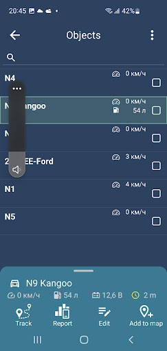 Приложение позволяет отслеживать передвижение доступных пользователю объектов на карте