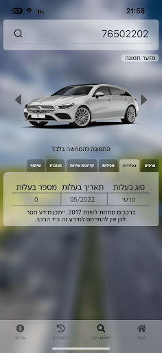 Just enter a vehicle license number and get technical information about vehicles registered in the State of Israel over the year 1996. Some of the details you can get through the application are: Airbags, gear type, and a host of other details.