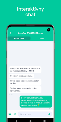 Aplikácia SeekApp TRANSPORT vznikla z potreby zrýchliť logistiku a otvoriť trh medzi malými a strednými spoločnosťami, či už sa jedná o odosielateľa alebo dopravcu bez sprostredkovania tretích strán. SeekApp TRANSPORT je moderná platforma a aplikácia, ktorá Vám ponúka rýchlu komunikáciu medzi oboma stranami.
