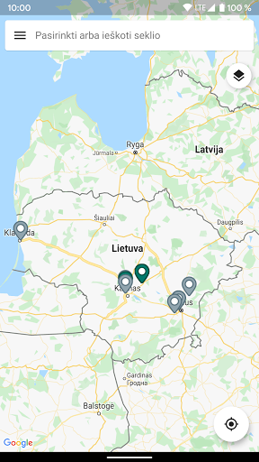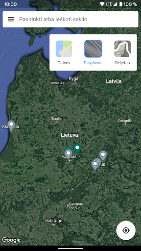 * Galimybė rinktis iš keleto žemėlapių: Palydovinis ar Gatvės