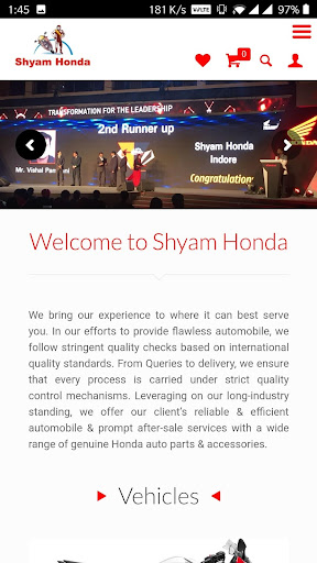 This application provides an excellent facility to avail the various services of Indore’s Dealer of Honda 2-wheelers, Shyam Honda. It enables you to enjoy Shyam Honda’s exceptional services over other dealers with just a tap on your Android enabled mobile phone.
