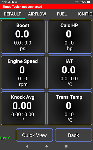 -Long click on “Quick View” will load into a full screen mode displaying the first 8 gauges on the current tab.