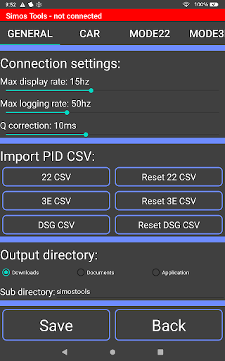 -Logging will take place once all conditions in the logging equation have been met. Example: “c>0|r>1000|d>70” – logging will start if cruise control is enabled, when RPM is above 1000 and when pedal position is above 70%.